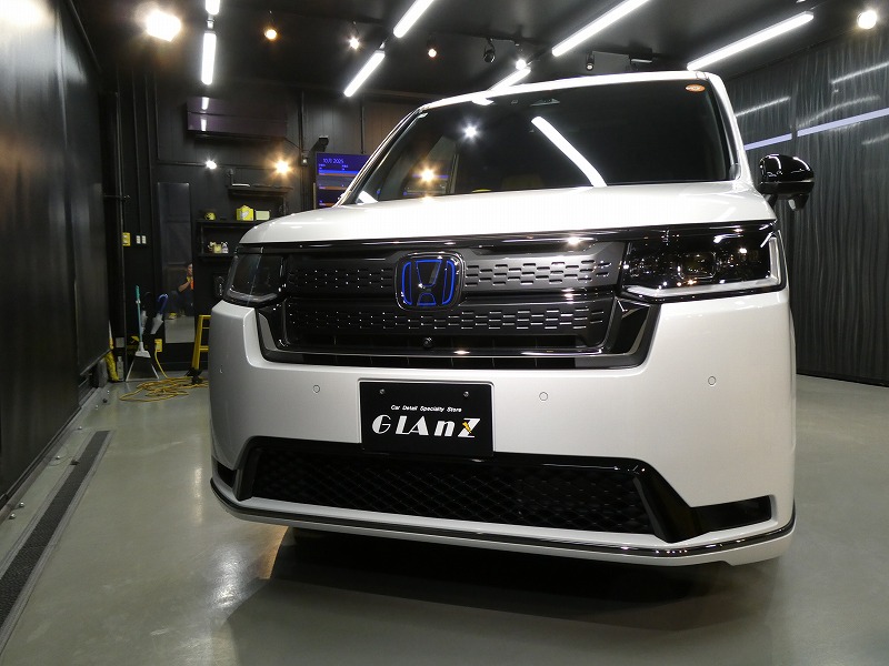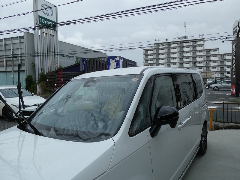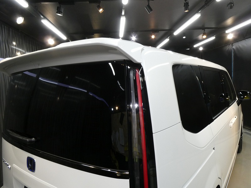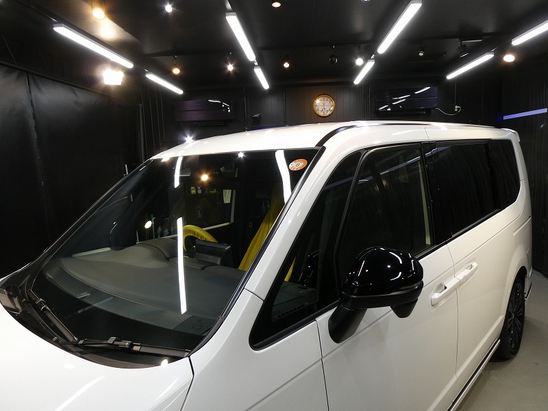 K様 ホンダ ステップワゴン 新車 ボディーコーティング及びフィルム施工及び窓ガラス撥水加工及びアルミホイールコーティング作業です。