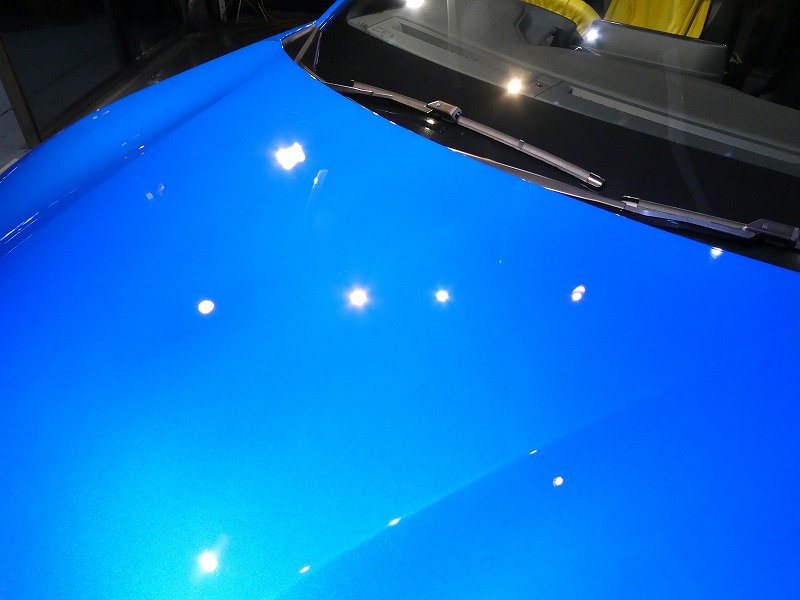 塗装面ですがシミやスクラッチキズが見られました。丁寧に下地処理後 ガラス系コーティング ZONEを施工しました。