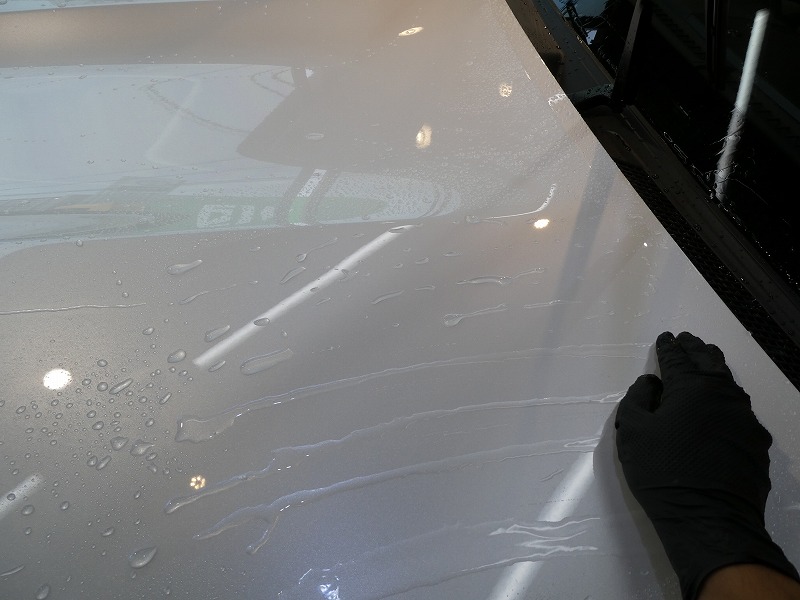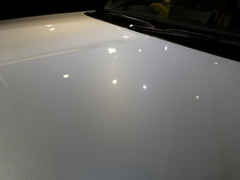 塗装面ですが非常に綺麗でしたが所々少しシミが見られました。丁寧に下地処理後 ガラスコーティング SOLIDを施工しました。