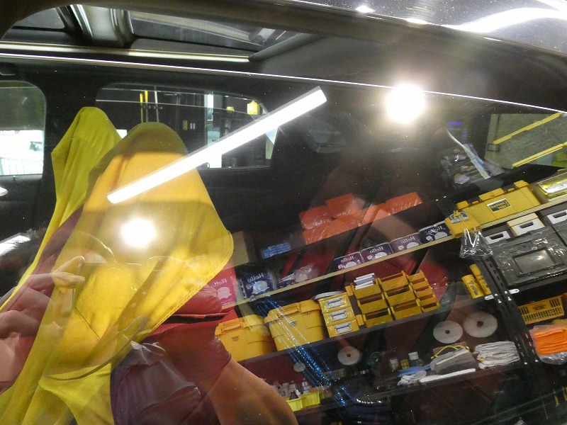 フィルムはフロント3面に透明断熱フィルムFGR−500を施工しました。