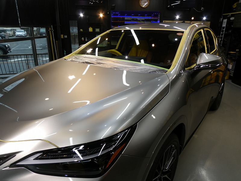 I様 LEXUS NX350h 新車 ボディーコーティング、窓ガラス撥水加工及びアルミホイールコーティング作業です。
