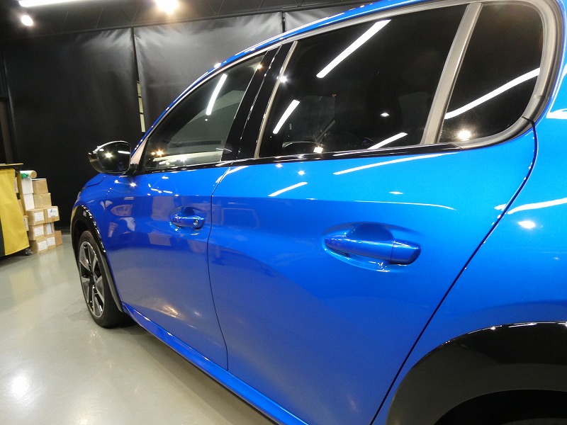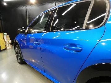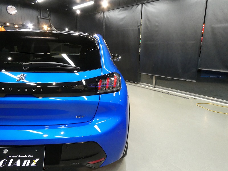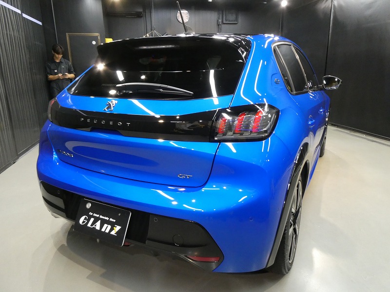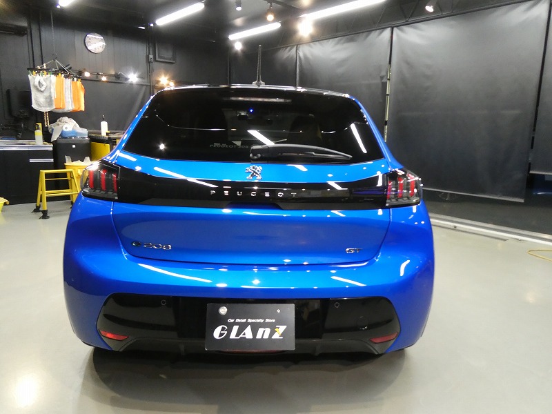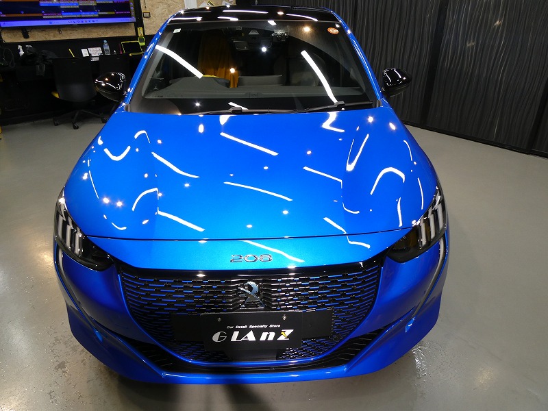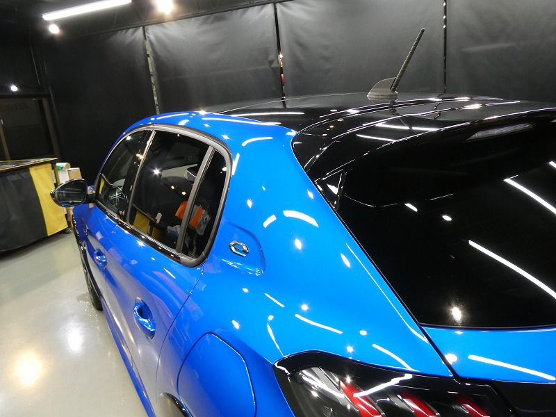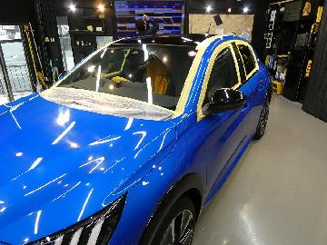 A様 プジョー e208 ボディーコーティング、窓ガラス撥水加工作業です。