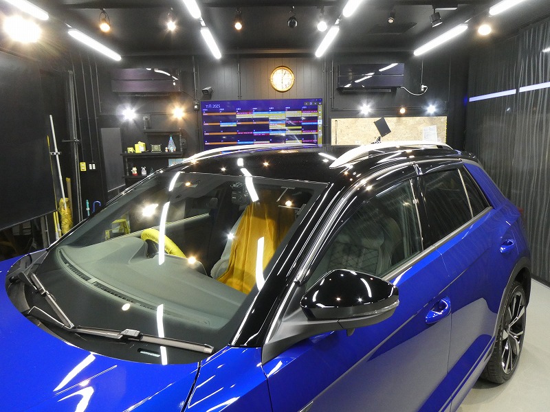 フォルクスワーゲン T−ROC 新車 ボディーコーティング作業です。 丁寧に下地処理後コーティングを施工しました。 施工したコーティングはガラス系コーティングです。 窓ガラスとアルミホイールもコーティングを施工しました。 R7 2025.10.31