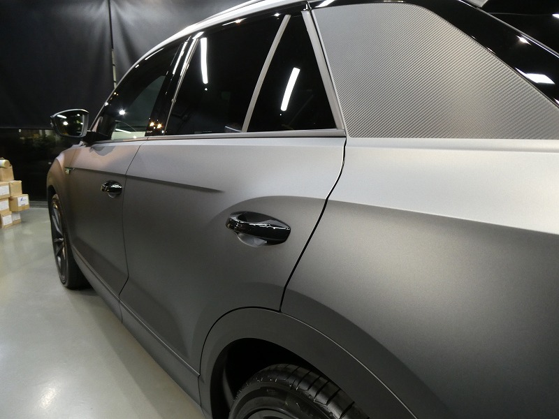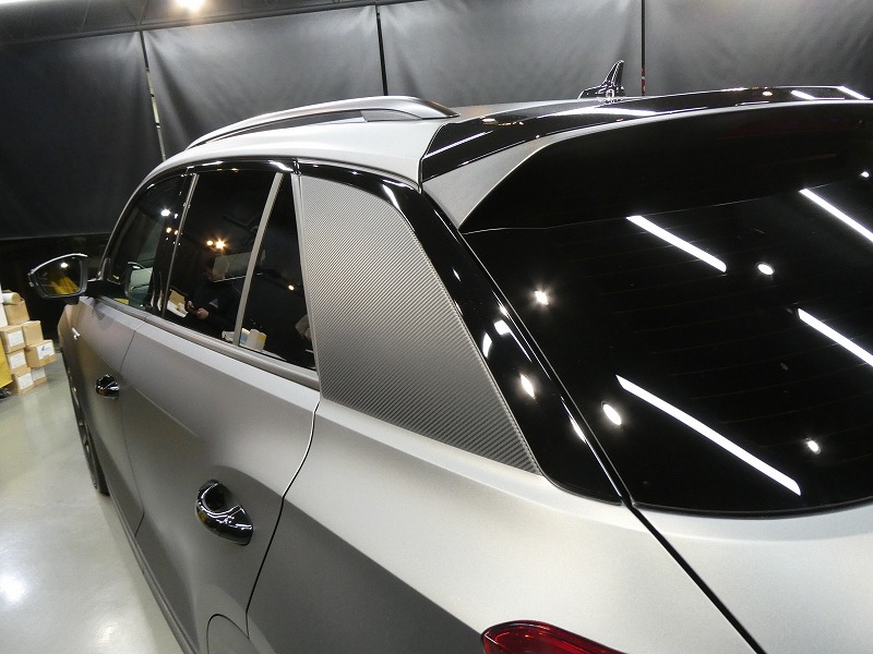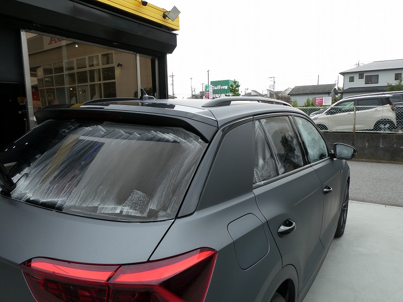 フィルムはリア3面ダークティンテッドガラスにシルフィード SC−7030を施工しました。ボディーカラーはインジウムグレーマットのマットカラーです。