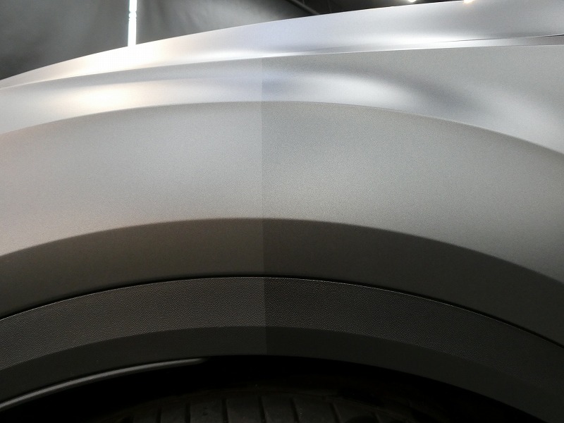 ボディーは下地処理後コーティングを施工します。 左が施工前、右が施工後です。 少し艶が出ます。