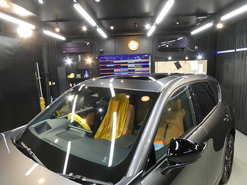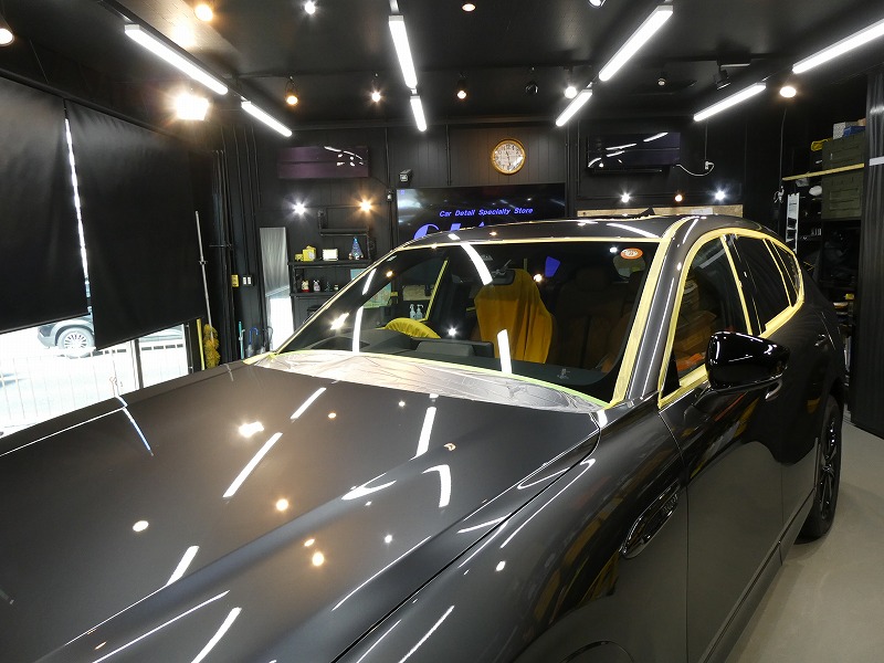 T様 マツダ CX−60 新車 ボディーコーティング、窓ガラス撥水加工及びアルミホイールコーティング作業です。