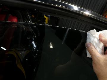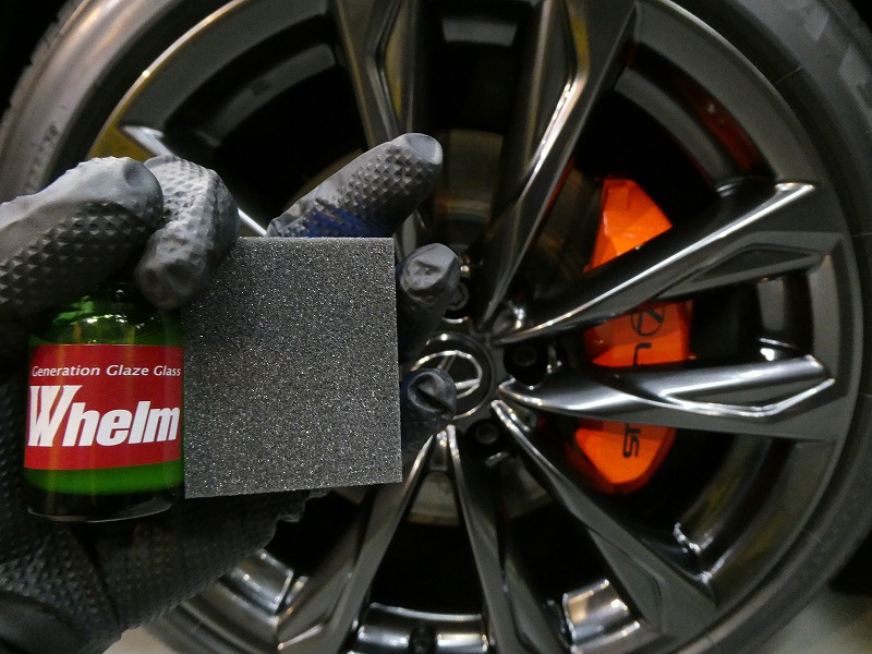 窓ガラス・アルミホイールも丁寧に下地処理を行いコーティングを施工しました。