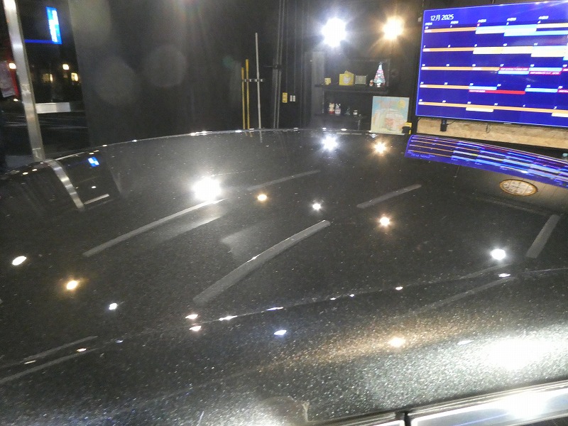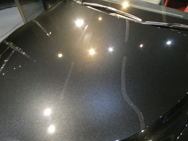 所々、よく見るとシミなどが見られました。 磨き作業にて修正していきます。 磨き作業後、脱脂作業の後コーティング施工します。