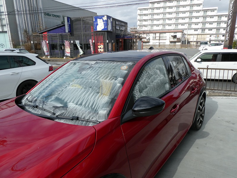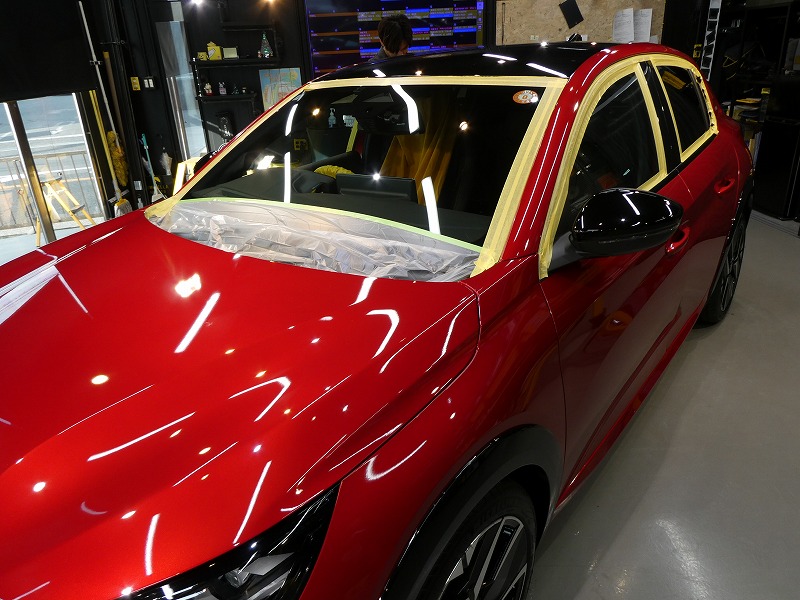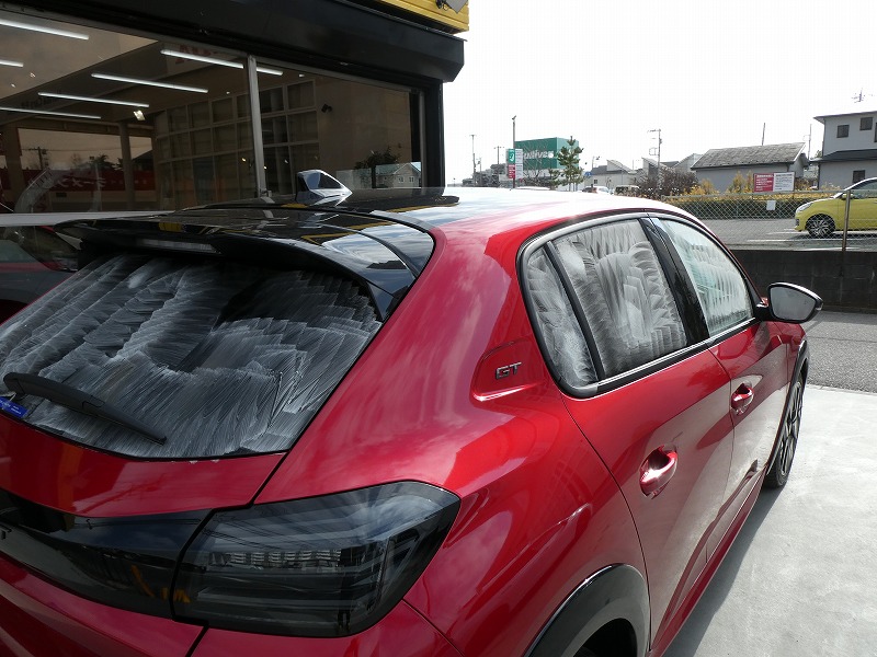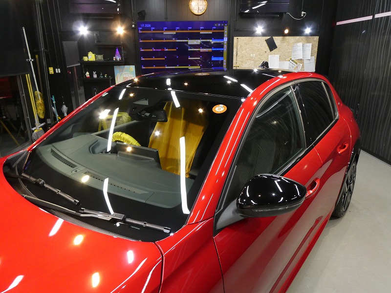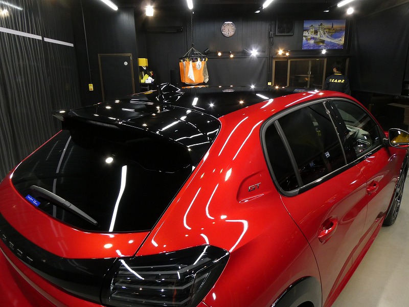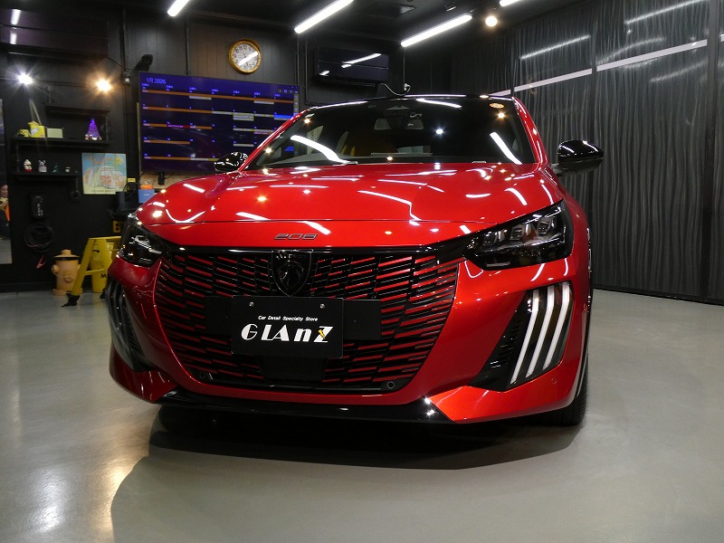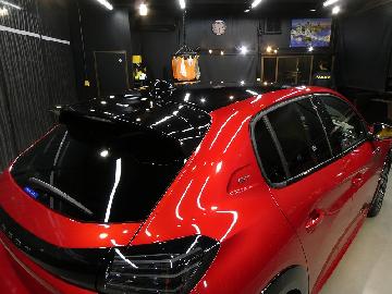 I様 プジョー 208 新車 ボディーコーティング及び窓ガラス撥水加工及びアルミホイールコーティング作業です。