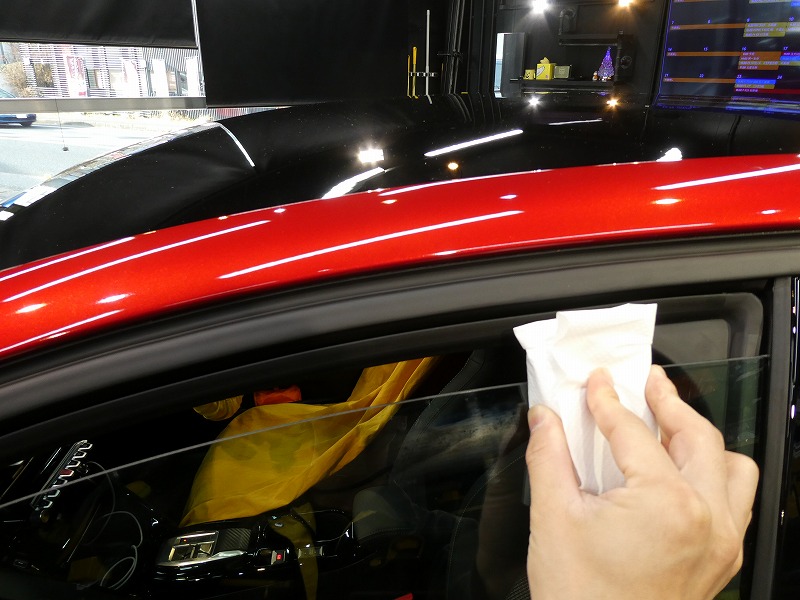 窓ガラスは全てのガラスに、下地処理後コーティングを施工しました。