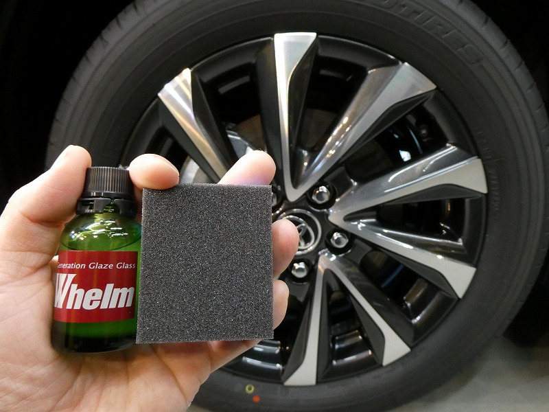 窓ガラス・アルミホイールも下地処理後コーティングを施工します。
