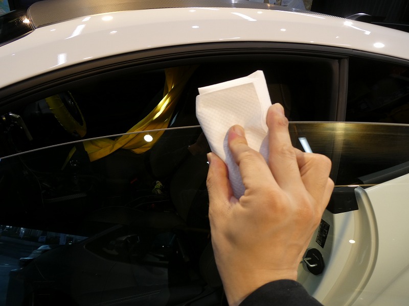 窓ガラスには撥水剤を施工します。