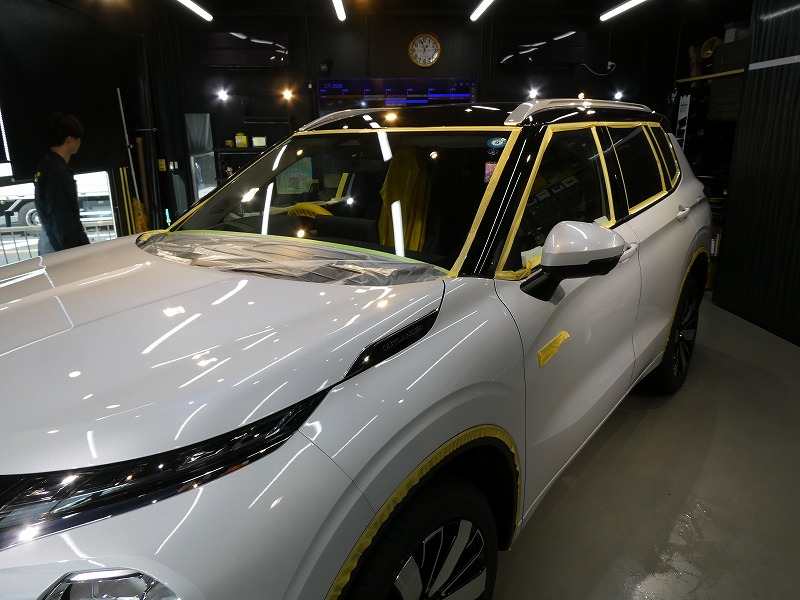 I様 ミツビシ アウトランダーPHEV 新車 ボディーコーティング及びフィルム施工作業です。