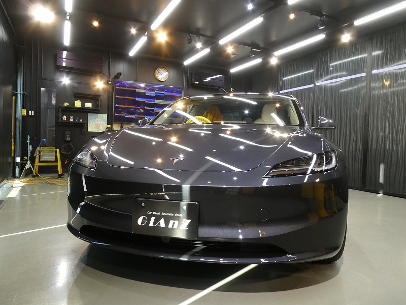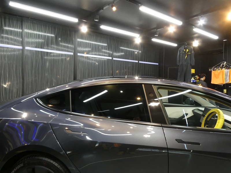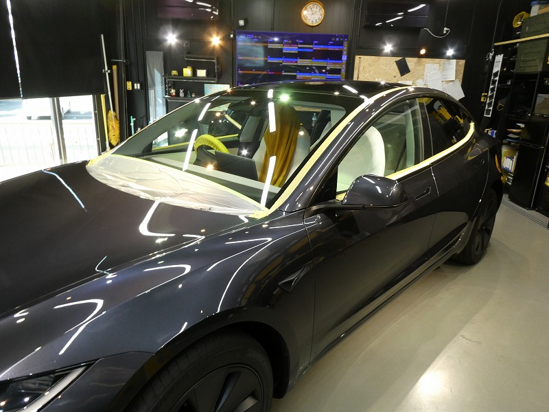F様 テスラ モデル3 新車 ボディーコーティング及び断熱フィルム施工及び窓ガラス撥水加工作業です。