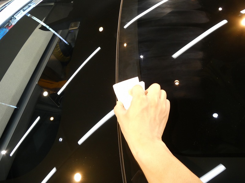 窓ガラスはサンルーフとリアガラスを下地処理後コーティングを施工しました。