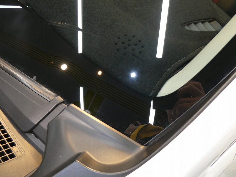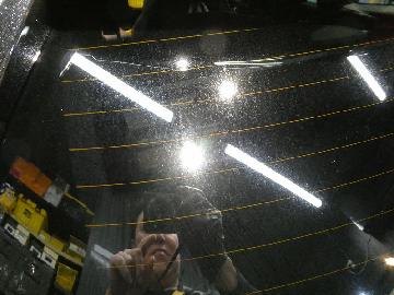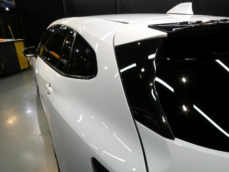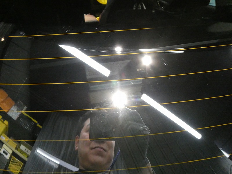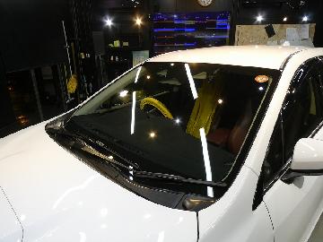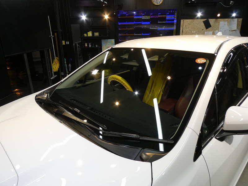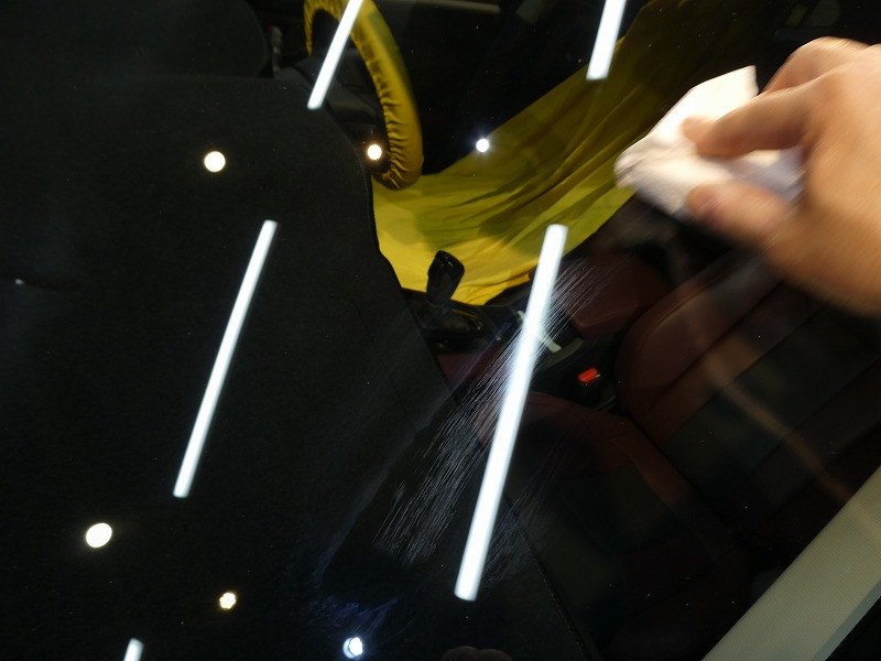 フロントとリアガラスは磨き作業後、撥水加工を行いました