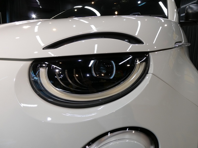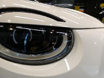 千葉船橋市習志野の「グランツ」 > サービスメニュー施工実績 > H様 アバルト 500e 新車 ヘッドライトプロテクションフィルム施工作業