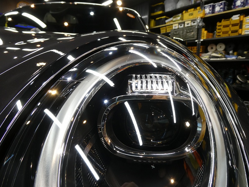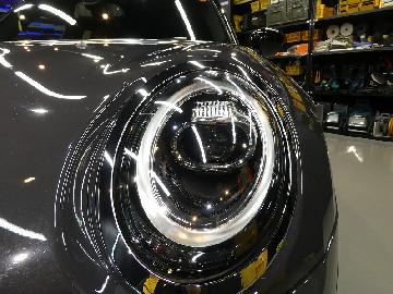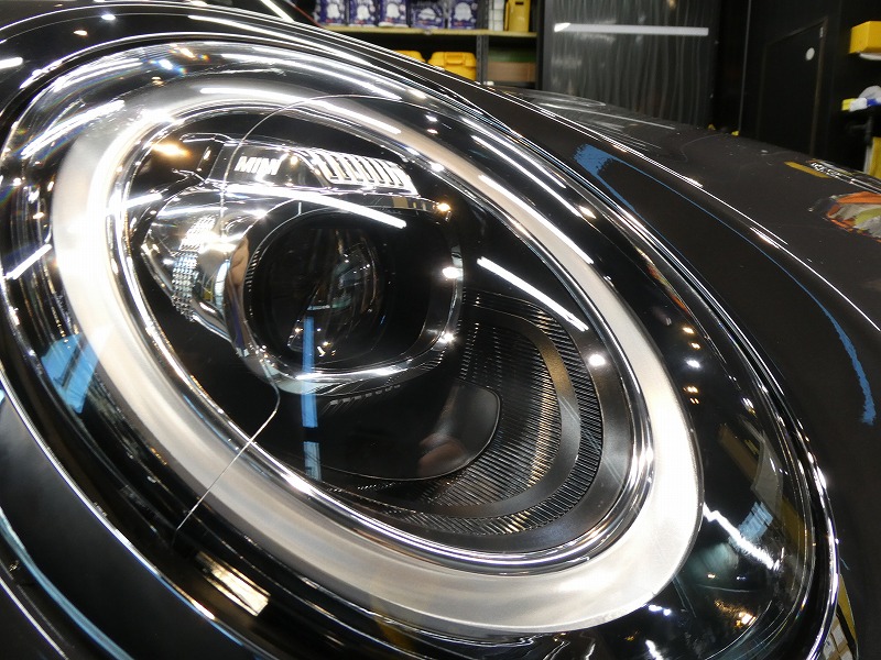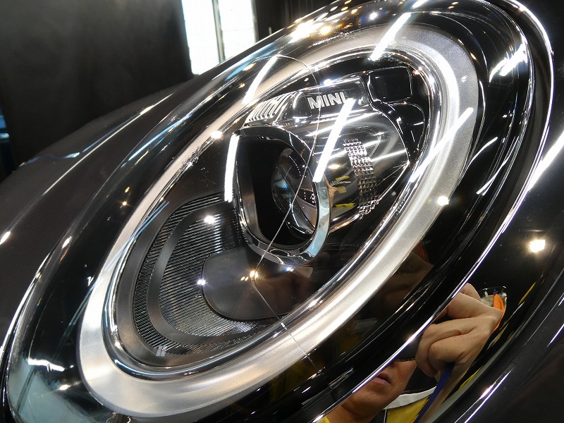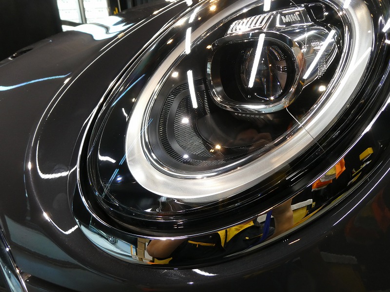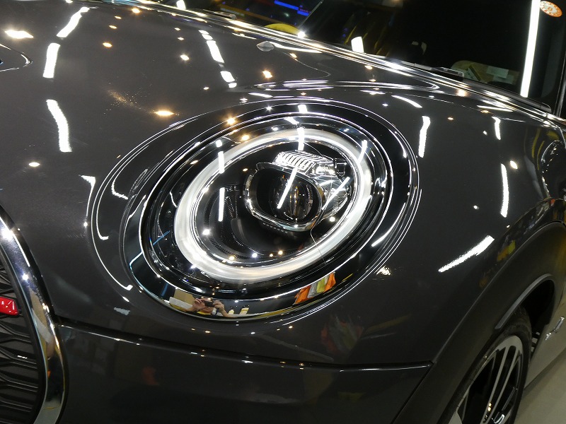 T様 ミニ クラブマン ヘッドライトプロテクションフィルム施工作業です。