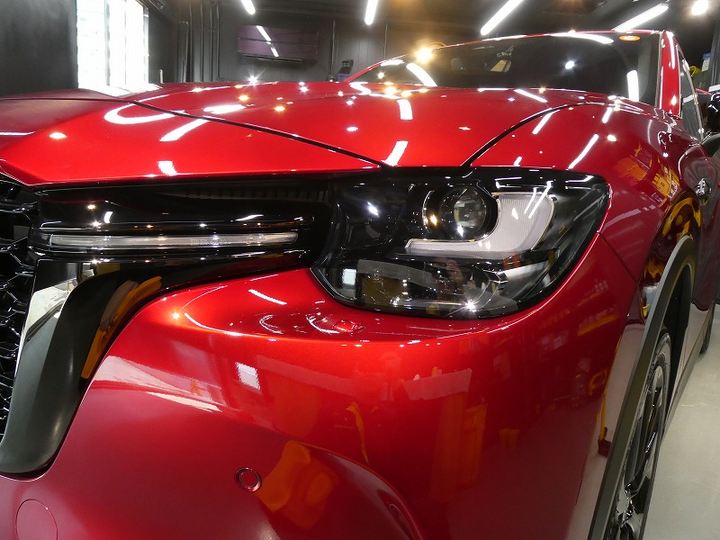 S様 マツダ CX−60 新車 ヘッドライトプロテクションフィルム施工作業です。