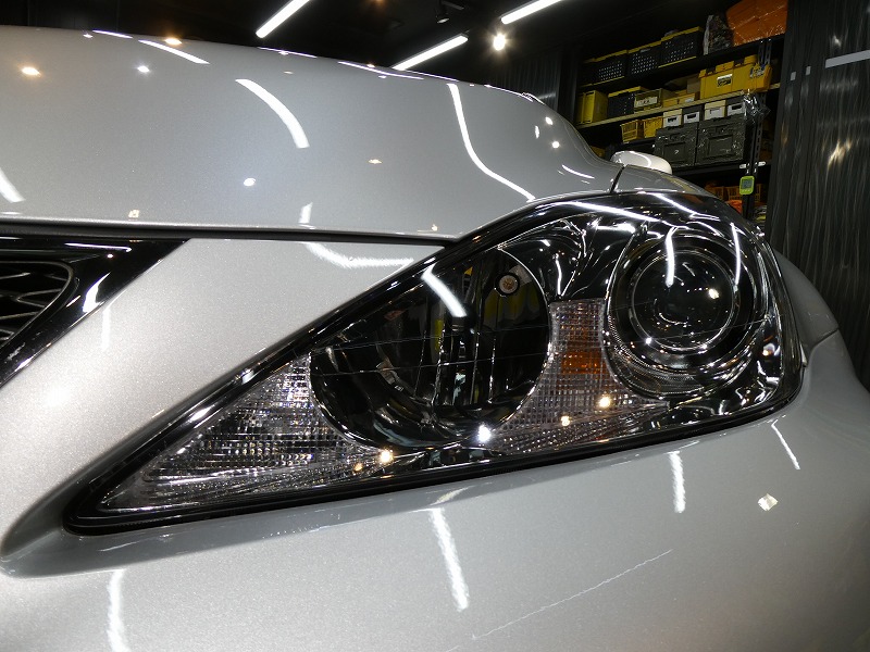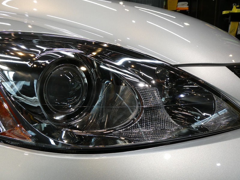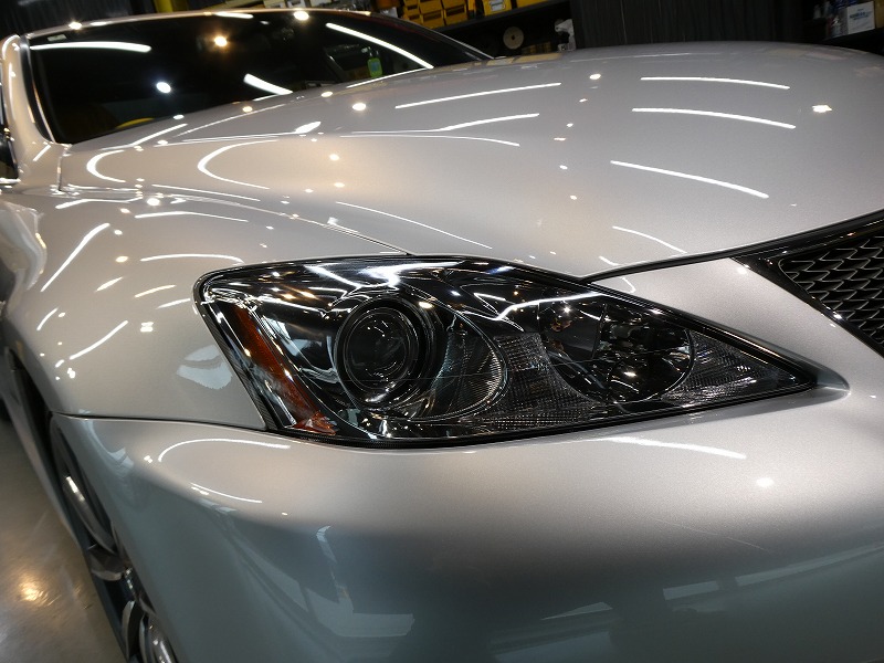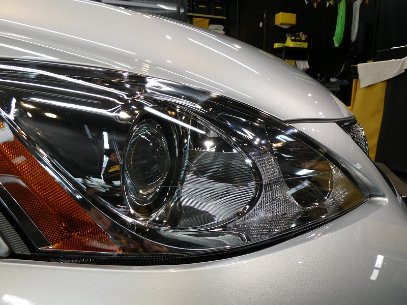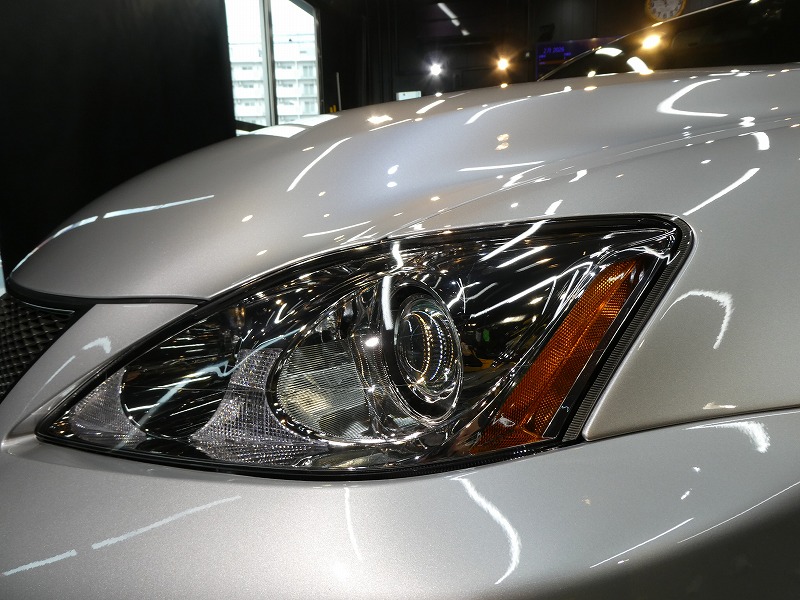 LEXUS IS‐F(H20.7月登録) ヘッドライトプロテクションフィルム施工作業です。