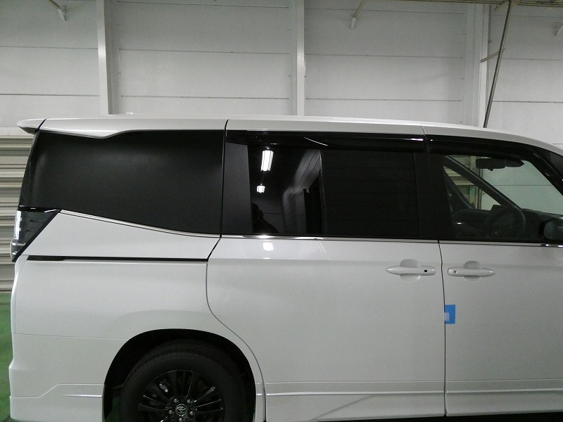 トヨタ ヴォクシー 90系 新車 断熱フィルム施工作業です。 施工したフィルムはルミクール NS−008 ピークスモークです。 リア5面 プライバシーガラスに可視光線透過率7%のフィルムを施工しました。 ○参考施工価格(税別)正確な金額はお手数ですが、お見積もりをお願い致します。 トヨタ ヴォクシー リア5面フィルム施工 ルミクール施工 ¥45,000 シルフィード施工 ¥58,500 R7 2025.10.3