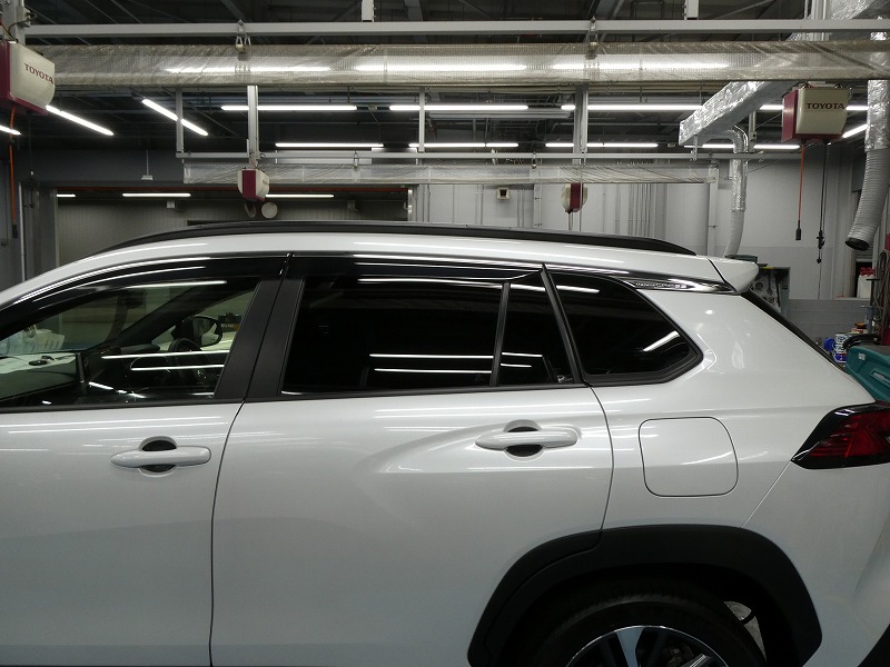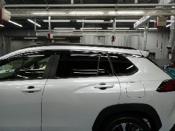 トヨタ カローラクロス フィルム施工作業です。 施工したフィルムはリア5面にシルフィード SC−7008です。 リア5面プライバシーガラスに可視光線透過率7%の断熱フィルムを施工しました。 ○参考施工価格(税別)正確な金額はお手数ですが、お見積もりをお願い致します。 トヨタ カローラクロス リア5面フィルム施工作業 ルミクール施工 ¥45,000 シルフィード施工 ¥58,500 R7 2025.11.11