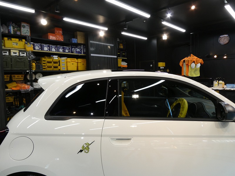 H様 アバルト 500e 新車 フィルム施工作業です。