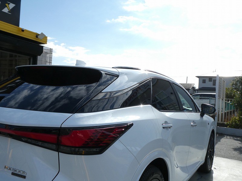 N様 LEXUS RX500h 新車 フィルム施工作業です。 N様 またのご依頼誠にありがとうございます。大事なお車丁寧に作業致しました。 施工したフィルムはリアガラス1面にルミクール NS−003です。 ○参考施工価格(税別)正確な金額はお見積もりをお願い致します。 LEXUS RX500h リアガラス1面フィルム施工作業 ルミクール施工 ¥20,000 シルフィード施工 ¥26,000 R7 2025.12.9