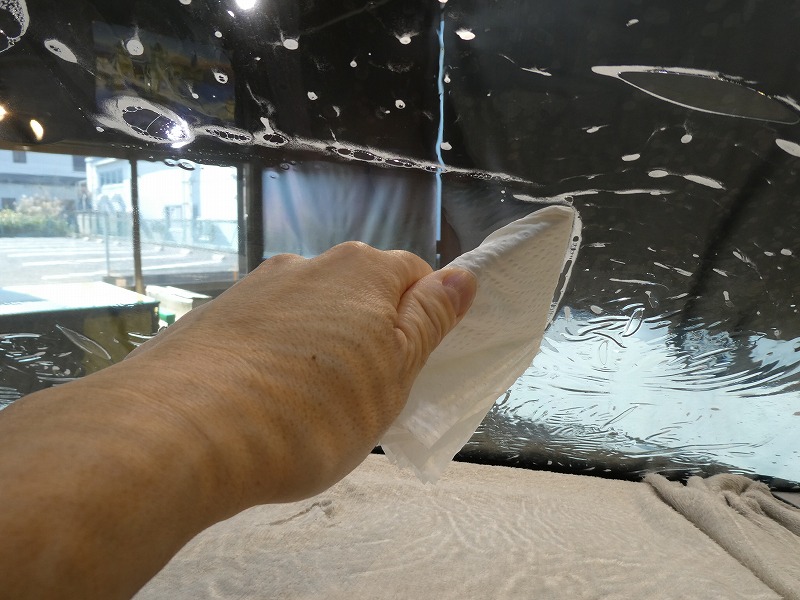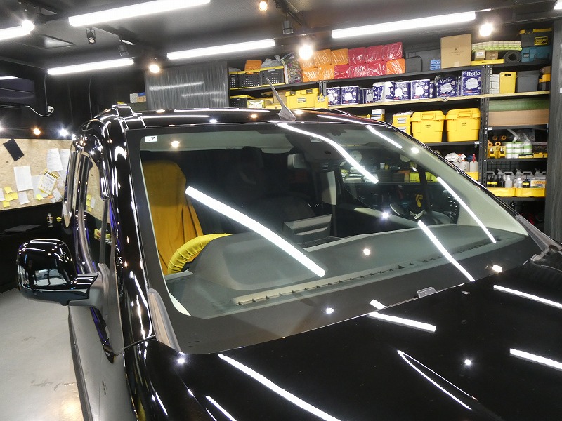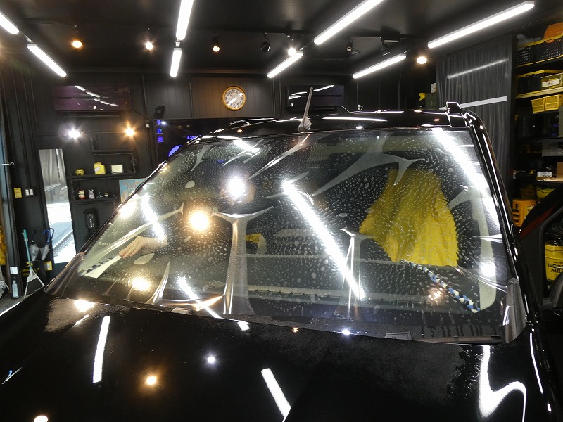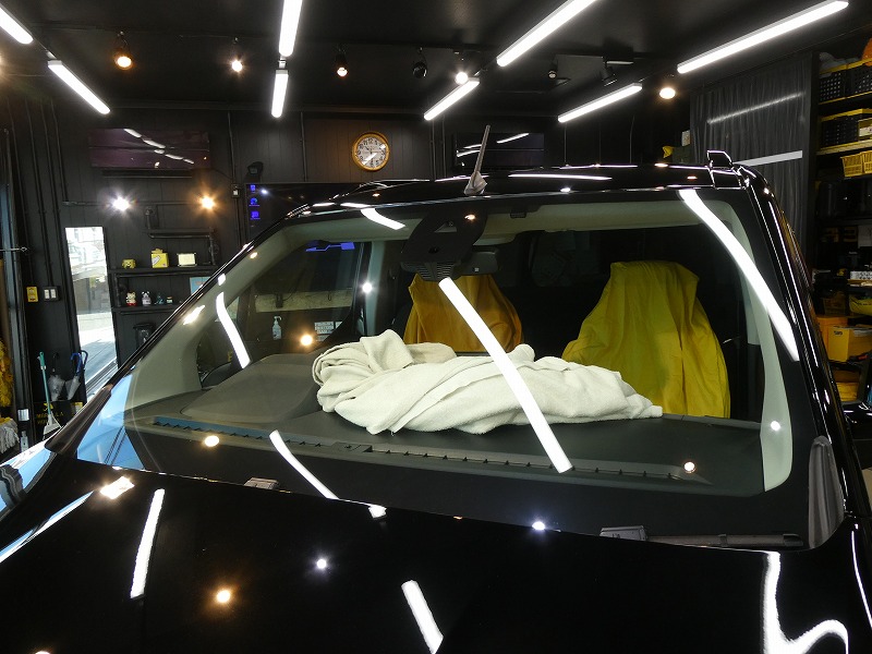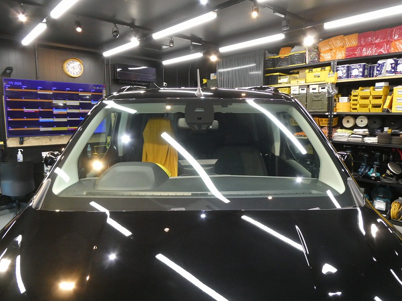 フロントガラス、施工中です。
