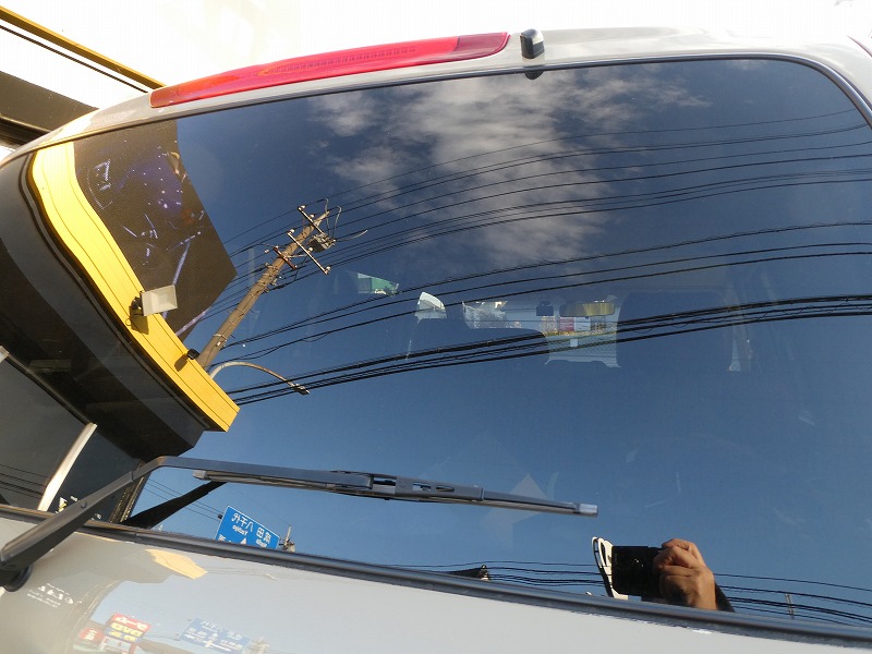 リア5面プライバシーガラスに可視光線透過率46%の断熱フィルムを運転席・助手席には透明断熱フィルムを施工しました。