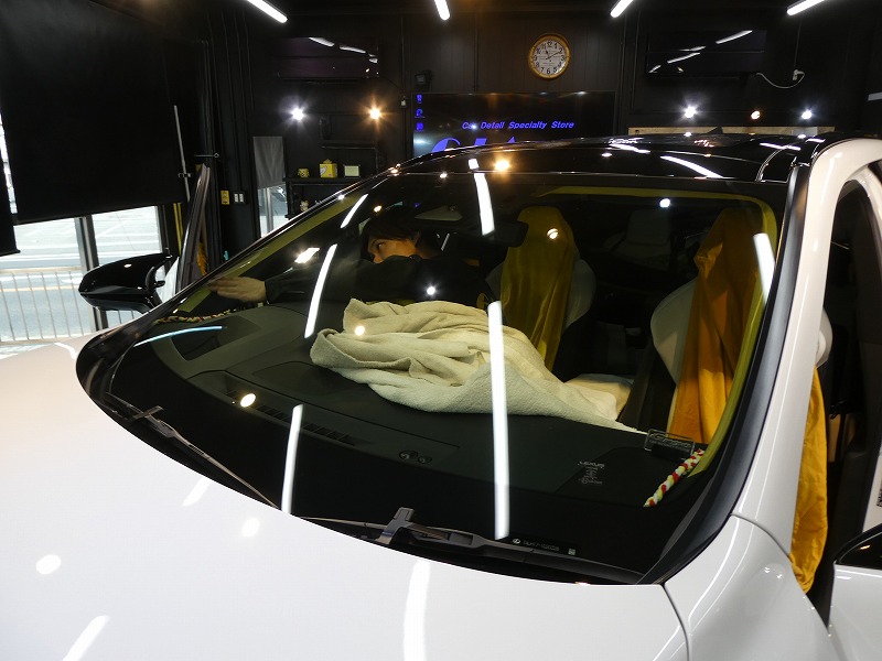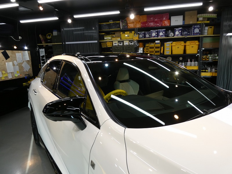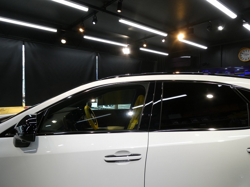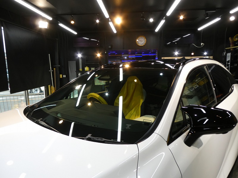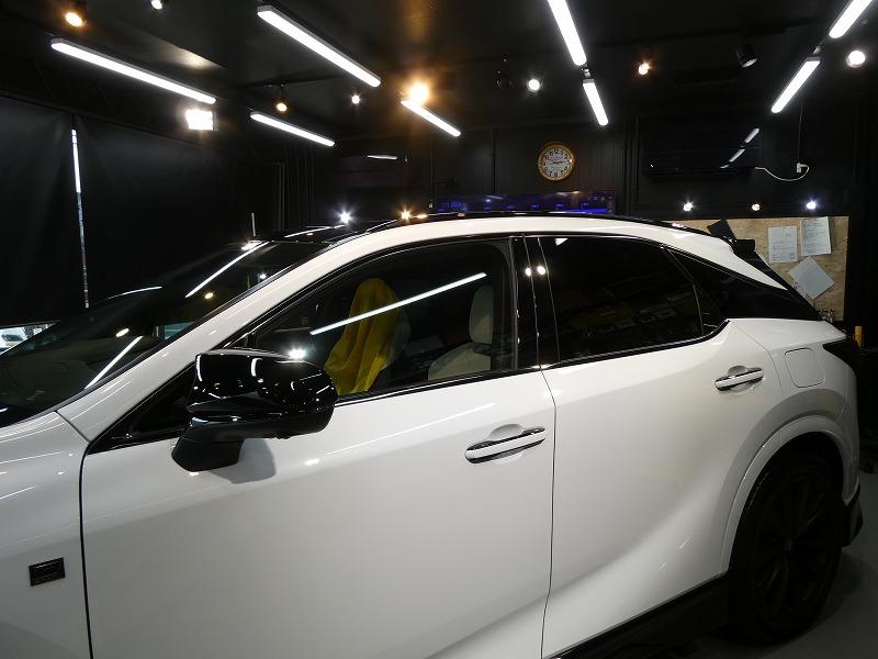 S様 LEXUS RX500h 運転席・助手席・フロントガラス3面透明断熱フィルム施工作業です。