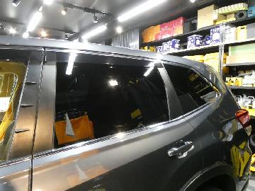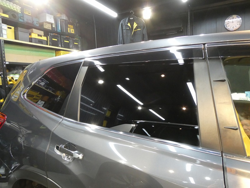 リア5面プライバシーガラスに可視光線透過率13%と20%の断熱フィルムを施工しました。