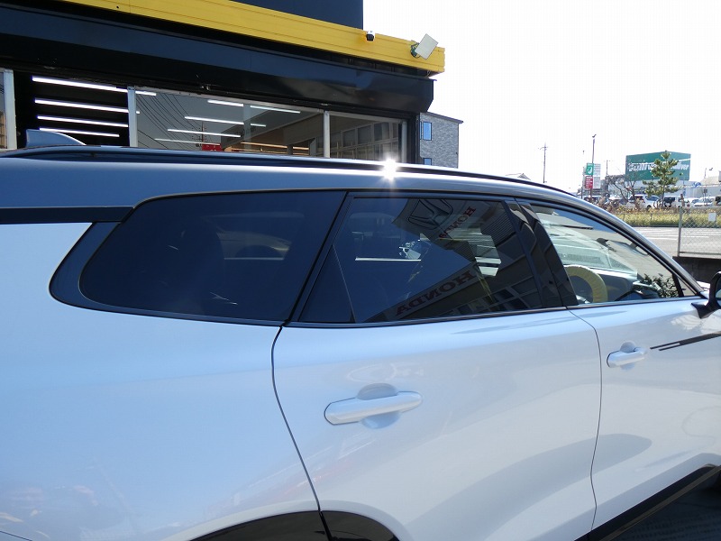リア5面プライバシーガラスに可視光線透過率20%の断熱フィルムを施工しました。